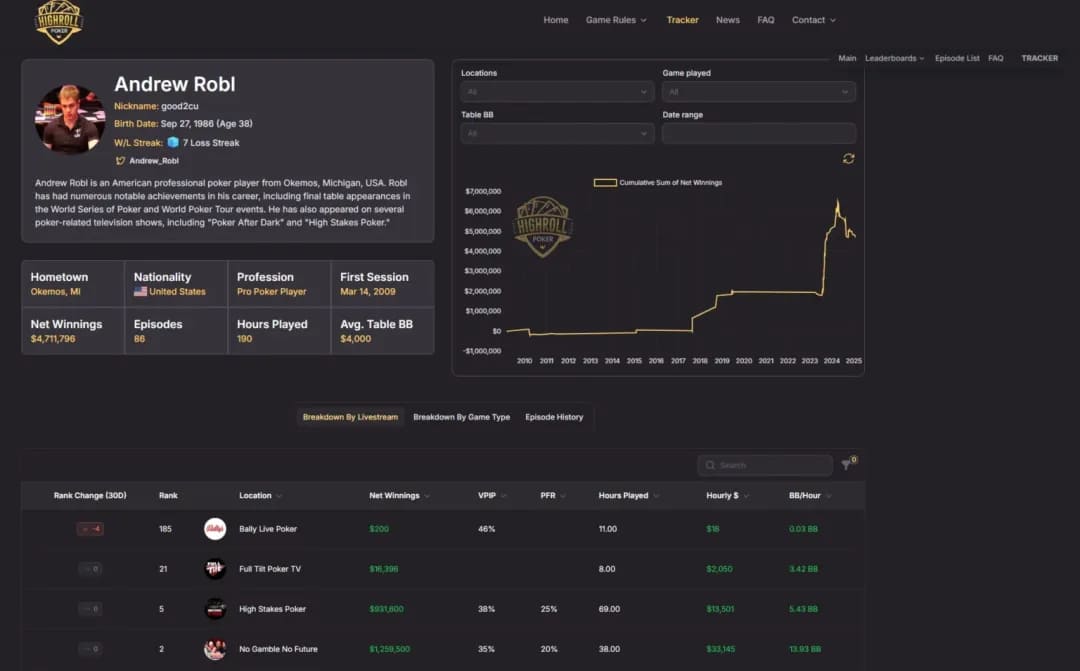2025年,Highroll Poker是最大的玩家追踪网站,该团队收集了以下信息: