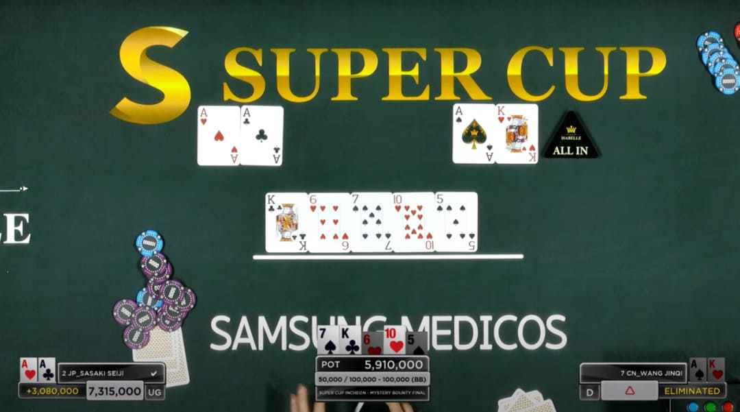 SHOW CARDS:王金琦A♠K♥ ;SASAKI A♥A♣