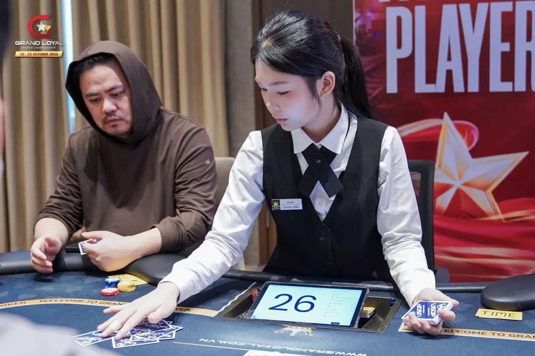 河内的天空被连绵的阴雨笼罩,灰蒙蒙的云层低垂,预示着台风正逐渐逼近。然而,Grand Loyal扑克锦标赛(GLPC)第四日的赛场内,气氛却与室外的湿冷沉闷截然相反。这里的热浪澎湃激昂,记分牌碰撞的清脆声响、选手们深谋远虑的呼吸声,共同交织成一首激昂的战曲,仿佛要与窗外渐起的风雨声一较高下。