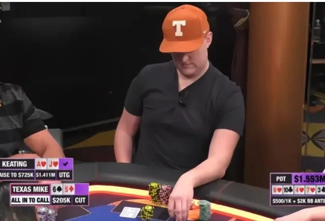 和Goldstein一样,Moncek最大的直播亏损也来自《Hustler Casino Live》的“百万美元游戏”。仅对Alan Keating一人,他在三场session中就输了约300万美元。有一次他们在翻牌前进行抛硬币式全押,彩池超过200万美元——最终德州迈克输了。但正如他可能会说的:只要还活着,就是幸运的。