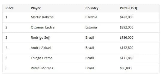 决赛桌开局后,Daniel De Almeida与Kelvin Kerber相继出局,将比赛推向奖励圈泡沫阶段。从此刻起,赛事彻底进入Martin Kabrhel与Ottomar Ladva的二人转时间——自泡沫阶段往后所有淘汰均由这两人包办。