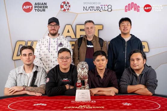 经过四天冠军赛的激烈角逐,首届93,000新台币(约3,000美元)的[赛事6] Natural8杯冠军赛(共490人次参赛)迎来最终九强,向 APT 锡狮冠军奖杯,以及39,372,480新台币(约1,270,080美元)总奖池中的高额冠军奖金,展开激烈争夺。
