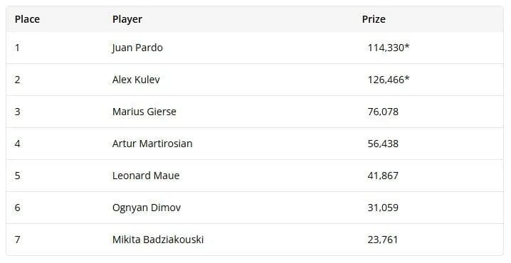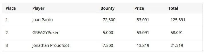 Pardo一举淘汰6名对手,光赏金就斩获了72,500刀,最终他击败“GREAGYPoker”夺冠,总计拿下125,591刀。