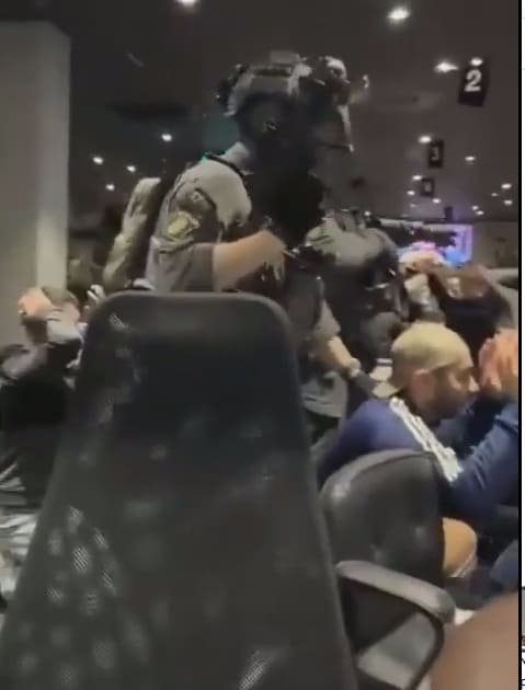 突然,大门被破开。全副武装、身着战术装备的警察蜂拥而入。命令声、嘈杂声瞬间取代了记分牌碰撞的声响。根据瑞典最大媒体《每日新闻报》的报道,现场近100名玩家被控制。