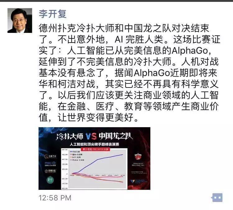 李开复参赛 + 投资德扑项目;