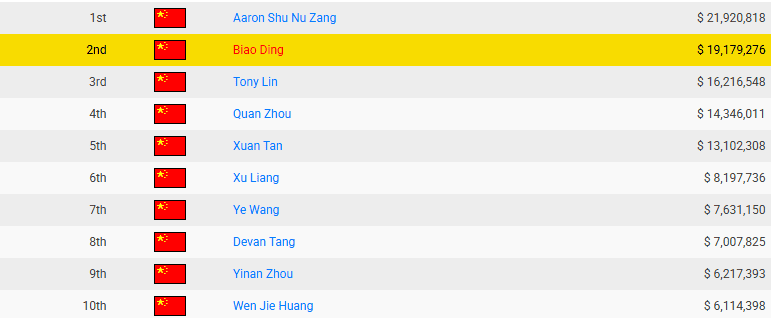 截至2025年11月30日,丁彪线下总收入累积已达全球第71位,亚洲第12位,中国第2位。
