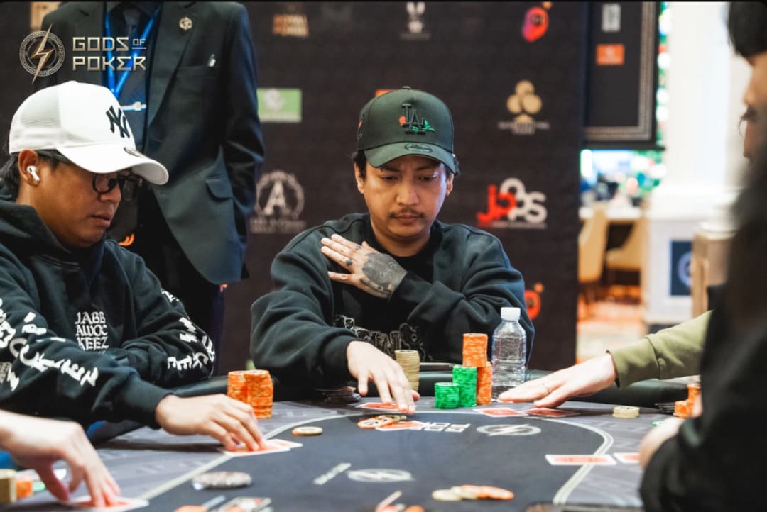 潘多拉神秘赏金赛Day1 ChipLeader, 菲律宾选手Jeorge Lagatuz将此策略发挥到极致,在AA(500K)碰KK(400K)击退今年CPG三亚总决赛冠军黄臻一后。