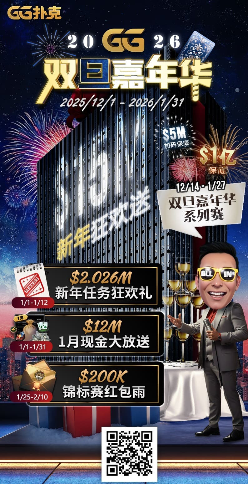 2026年1月3日至18日,KPC携20.1亿韩元总保底、主赛事8.8亿韩元保底强势登陆济州利陞。通过QQPK线上票赛赢得主赛事门票的玩家,请务必在12/31以前联系QQPK赛旅客服完成Champion Pass活动登记!10万美金主赛冠军加码、5%边赛冠军奖金加码,以及主赛泡沫保护,三重EV为你的线下征战多一份安心保障!机会仅此一程,登记即将截止,请立即行动!
