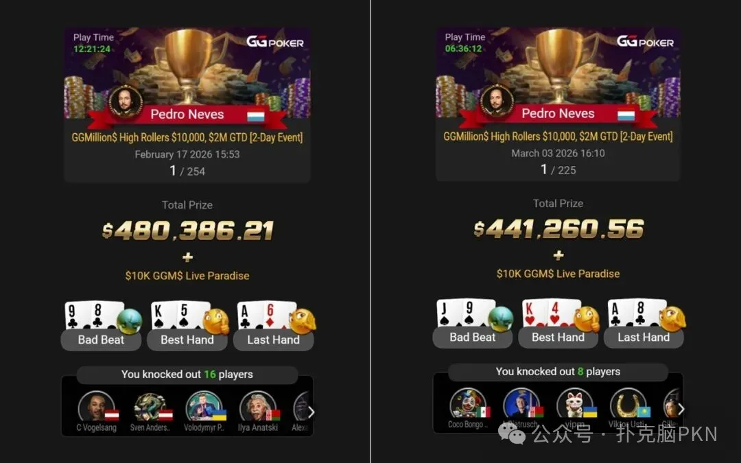 再来谈到排名第四的葡萄牙选手Pedro Neves (35.9BB),无疑是决赛桌上最被看好的大神。