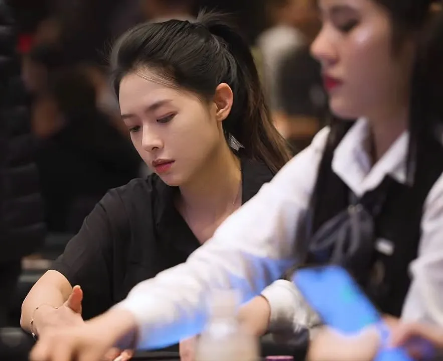 她边打边学,规则也不熟,术语也不懂,只知道自己一直在赢。桌边有两三个朋友不断给她“情绪价值”,教她怎么打、怎么想,而她居然经常上决赛桌、拿前几名。
