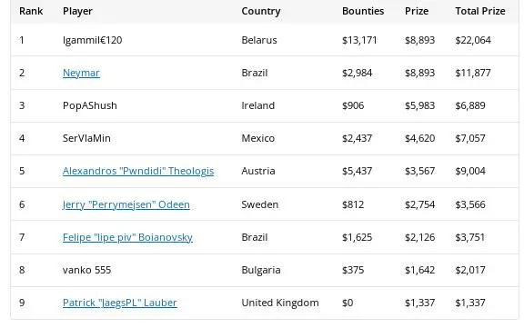但残酷的是:比赛只奖励前五名。内马尔拿了第六名——就差一位,刚好成了 “泡沫男孩” ,与$15,206的奖金擦肩而过。