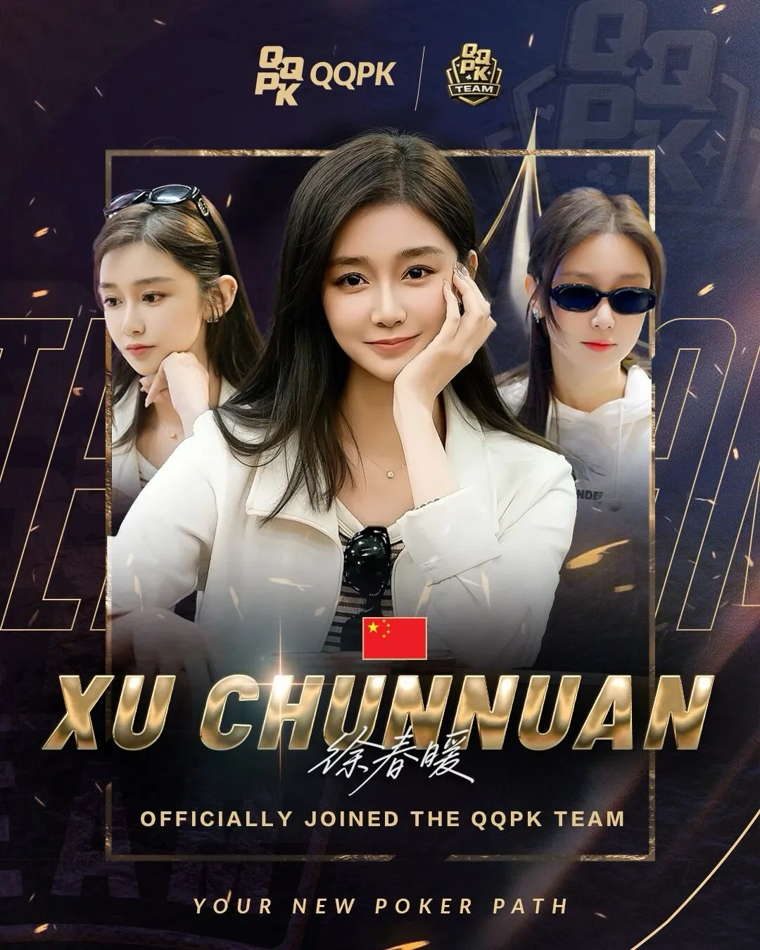 在竞技扑克的绿色战场上,顶尖的女性牌手永远是一道不容忽视的风景线。她们往往在极致的理性博弈中注入独特的感性直觉,而今天,我们要迎来一场梦幻联动:2026 Triton ONE QQPK Genesis决赛桌成员、近千人大赛冠军——徐春暖,正式官宣加入QQPK战队!