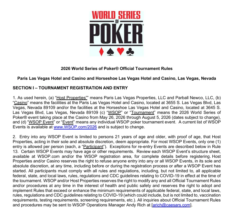 距离2026年世界扑克系列赛(WSOP)开幕不到一个月,官方悄然发布了一份新版赛事规则。