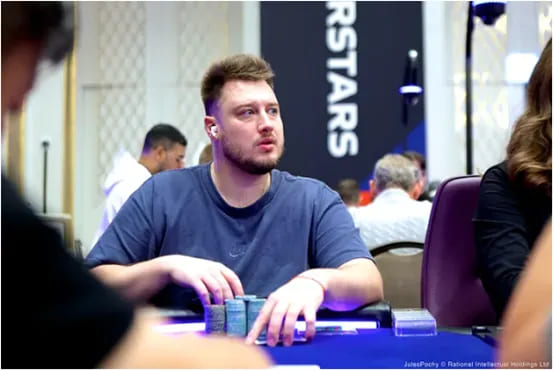 筹码领先的是英国选手Bobby James,筹码与他相差不大的哈萨克斯坦选手Damir Zhugralin 排第二位。