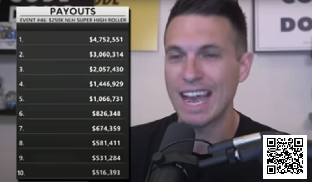 这手牌发生在今年夏天WSOP最贵的一场比赛:赛事46:$250K无限注德州扑克超豪赛。它出现的时机非常刁钻。当时场上还剩11位选手,而奖励圈人数为10人,妥妥的泡沫期。