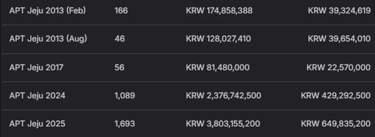 这届比赛是APT在韩国运营的最高奖池赛事,较2013年首届APT济州岛主赛事实现跨越式增长:参赛人次增长超十倍(当年166人次),奖池规模扩大逾二十一倍(当年奖池174,858,388韩币/160,520美元)。