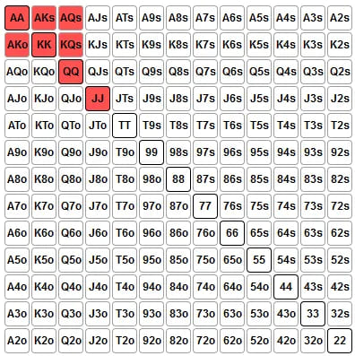 面对这样的范围,你需要非常小心,不要投入不必要的筹码。这意味着,3bet一个Nit在前面位置的加注,通常是自寻死路。