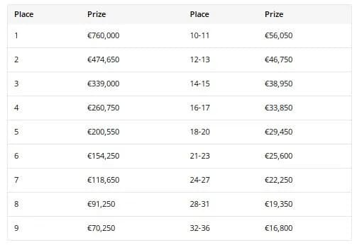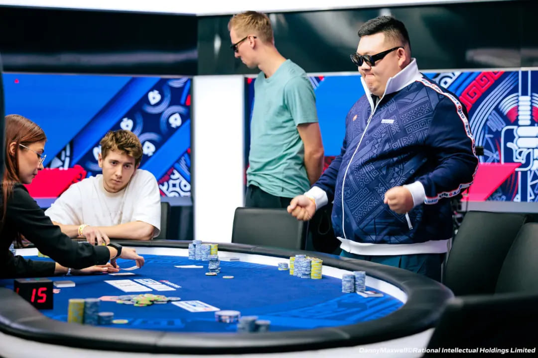 比赛将于当地时间10月10日星期五中午12点继续进行,计划与今日相同,进行四个90分钟的级别,预计将把赛场缩小至最后两到三桌。第四比赛日的座位安排与今日结束时相同,所有36位剩余选手已确保至少获得16,800欧元的奖金。