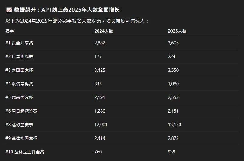 接着看向正在GG火热进行的《APT亚洲扑克线上巡回赛》,系列赛自10月26日启动,共设20场奖杯赛,目前已完成一半。