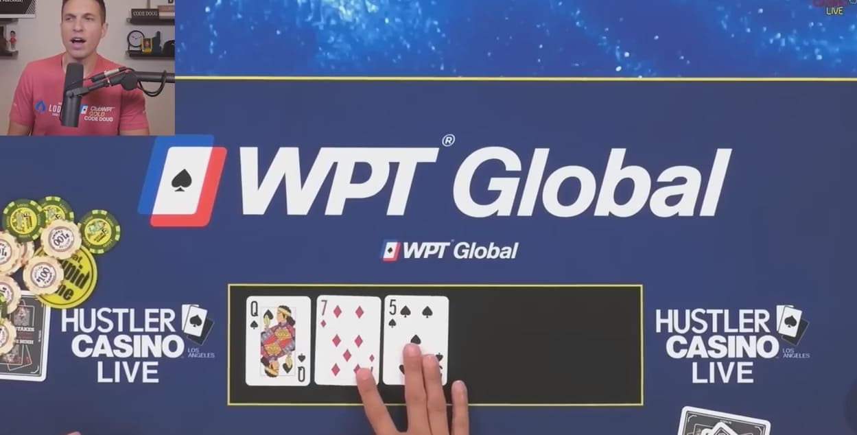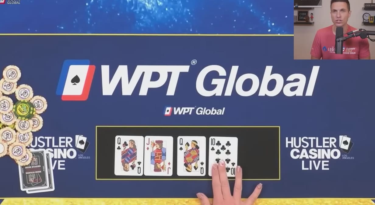这个超池下注就是在传达,他要么有顺子或是同花,要么就是在纯偷鸡。