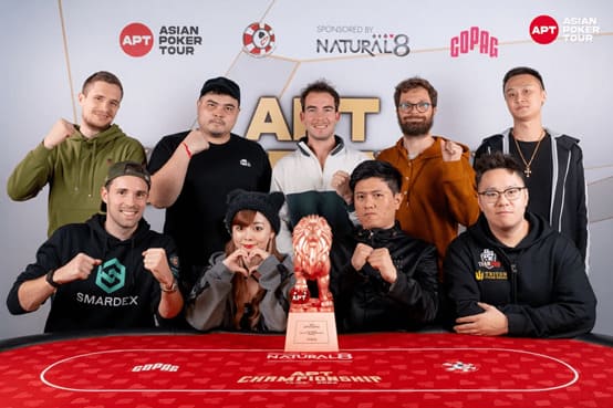 经过四天冠军赛的激烈角逐,首届93,000新台币(约3,000美元)的[赛事6] Natural8杯冠军赛(共490人次参赛)迎来最终九强,向 APT 锡狮冠军奖杯,以及39,372,480新台币(约1,270,080美元)总奖池中的高额冠军奖金,展开激烈争夺。