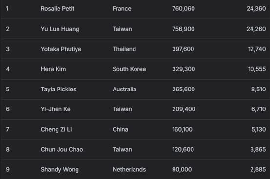 APT 女士冠军赛创亚洲千元级别女士赛规模之最!Rosalie Petit摘下桂冠!