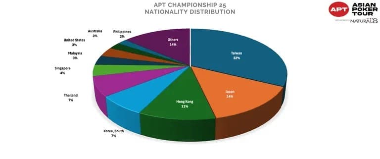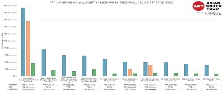 系列赛的焦点——311,000新台币(约10,000美元)的 APT 冠军主赛事,以671人次的亮眼数据,缔造了1.94亿新台币(约620万美元)的巨额奖池,成为近十年来,拉斯维加斯之外,规模最大、奖池最高的万元级别赛事,也是亚洲史上规模最大的主赛事,更是APT历史上奖池最高的锦标赛。
