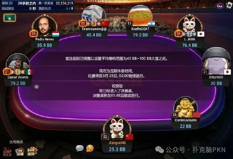 决赛桌阵容 神仙打架!