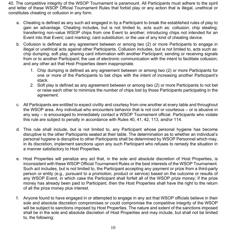 - 任何选手从第三方接受基于WSOP赛事结果所获得的奖金或报酬,属于违反赛事最佳利益。